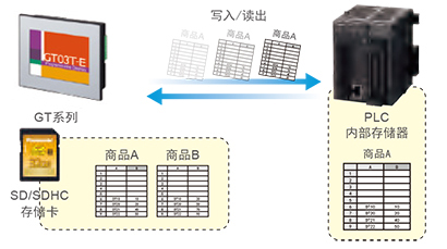 可將編制好的配方數據保存到SD/SDHC存儲卡內,并將指定數據寫入PLC或從PLC中讀出。